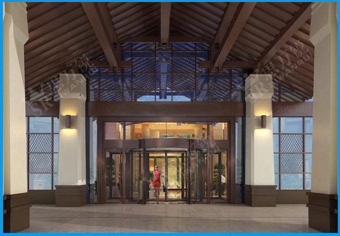 自動旋轉門 之為酒店通行提供安全保障 酒店作為服務場所,人流量比較高,同時又要顯示出酒店的豪華感,特別是一些星級酒店,更要展示出豪華以及檔次感,提高在人們心中的